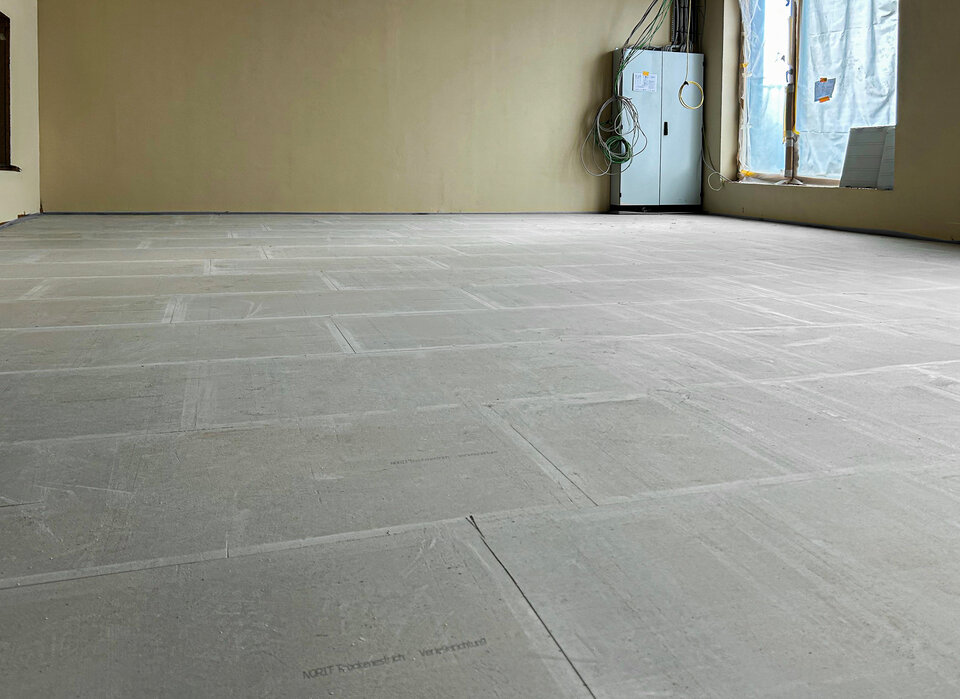 Ergänzend schafft der NORIT-TE 25 Trockenestrich eine stabile, lastverteilende Oberfläche – einfach zu verlegen, ohne Verschrauben, und aus nachhaltigem Material gefertigt.