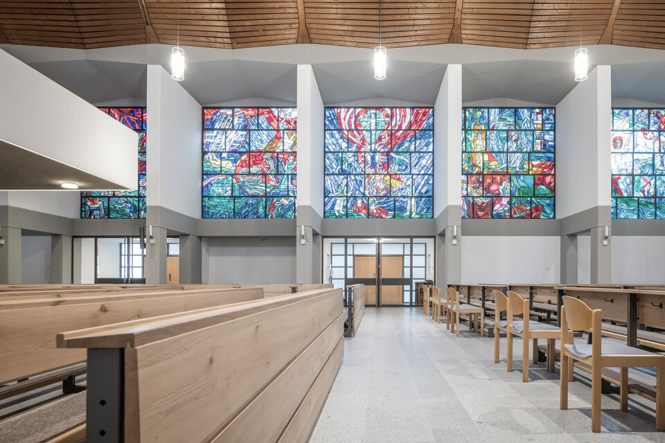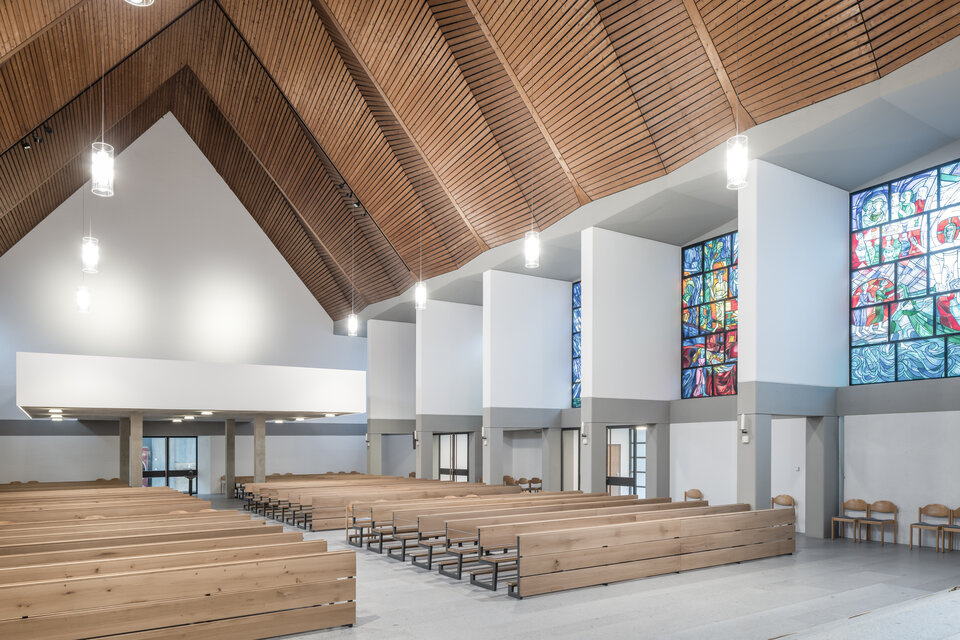 Die Pfarrkirche St. Josef im bayerischen Neunburg vorm Wald wurde 1967 um ein neues Kirchenschiff ergänzt und dem damaligen Zeitgeist entsprechend, sehr schlicht gehalten. Umso mehr stechen die bunten Kirchenfenster mit künstlerischer Gestaltung von Erich Schickling hervor. Die Schlichtheit der Raumgestaltung wurde bei der Sanierung beibehalten: Einfache, natürliche Materialien verleihen der Kirche eine besondere Ruhe. Die alten Kirchenbänke wurden z. B. durch offene Sitzreihen aus hellem Holz ersetzt. Die ursprüngliche Heizung unterhalb der Bänke musste weichen, nicht nur auf Grund optischer Aspekte, sondern vor allem um eine energieeffizientere und effektivere Heizlösung zu haben.