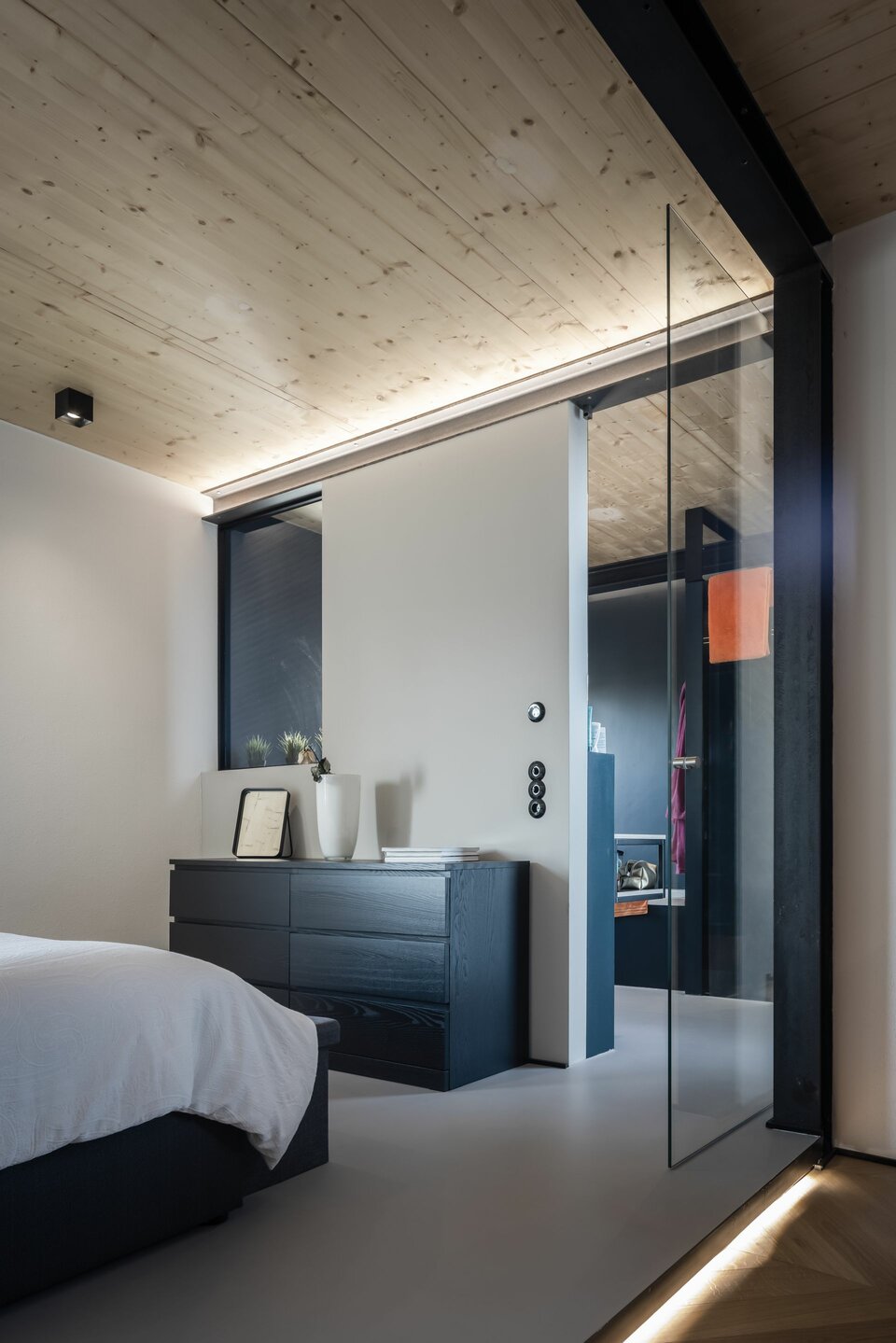 Ein echter Hingucker bei diesem Projekt ist nicht nur das hochmoderne Design, sondern auch die spezielle Bodenbeschichtung, welche statt einem Parkettbodenbelag gewählt wurde.