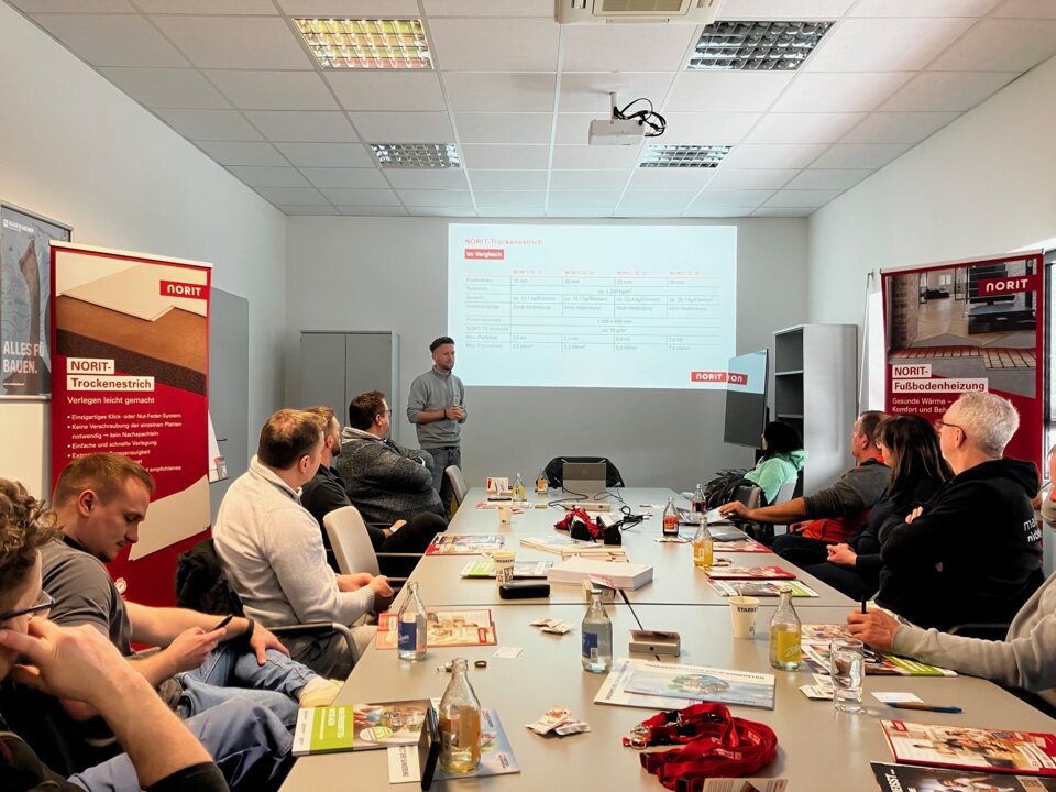 Im Rahmen einer Fachschulung in Zusammenarbeit mit unserem Partner RaabKarcher Erfurt vermittelten zwei unserer Kollegen praxisnahes und fundiertes Know-how rund um die Verlegung der NORIT-Fußbodenheizungssysteme. Der Fokus lag dabei klar auf der Anwendung in der Praxis – von der Systemlogik bis zu wertvollen Tipps für eine saubere und effiziente Umsetzung auf der Baustelle.